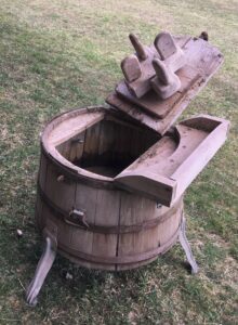 Samtidigt med bostadshuset byggdes också bland annat en bod och en tvättstuga på Sofielund. Tvättstugan utrustades med den supermoderna tvättmaskinen Rurik på bilden nedan.