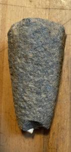 Vi har faktiskt själva haft turen att hitta en stenyxa bara några meter framför ytterdörren till Sofielund (bilden intill). Vi skulle plantera ett äppelträd, och en av stenarna i gropen såg inte alls ut som de andra. Enligt länsstyrelsen är det fråga om en Lihultsyxa, möjligen av grönsten. Den är troligen från år 6 000 – 4 000 f.Kr.